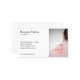 Modelo de cartão de negócios totalmente personalizável com uma foto profissional das costas de uma mulher.