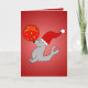 Modelo de cartão de saudação com selo com Papai noel que brinca com bola com texto Feliz de Natal e estrelas