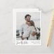 Este modelo de cartão-postal simples e elegante de "save the date" para casamento apresenta seus nomes e data abaixo da foto, juntamente com uma mensagem "Save the Date" transmitida com uma fonte animada e relaxada. Este texto de "save the date" em preto é uma imagem e não pode ser alterado. Você pode optar por alterar a fonte, pontuação ou cor utilizada para vários outros elementos de texto deste design na frente e/ou no verso. Por exemplo, você pode optar por dar uma certa cor a algum texto, ou excluir algo ou alterar um campo de texto inteiramente com uma mensagem diferente, se preferir. Escolhemos um preto ligeiramente suavizado para seus nomes e data na frente. No verso, você pode decidir excluir as linhas para as informações do destinatário se preferir um visual mais minimalista, etc. As cores de texto padrão no verso são um preto ligeiramente suavizado e um tom cinza. No verso, escolhemos uma ordem