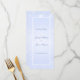 Estes Menus de Casamento personalizados apresentam um fundo azul pálido sombreado com borda branca e flocos de neve delicados.
