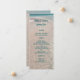 Cardápio de casamento alto com areia de praia e fundo de água azul tropical. Personalize o texto azul-esverdeado com um título, inclua os nomes do casal e liste todas as opções do menu. Tamanho 4 x 9 polegadas com mais mar e areia no dorso. Escolha qualquer papel ou vá para a opção de download - ou faça ambos.