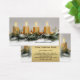 Certificado de presente festivo em tamanho de cartão de visita, apresentando velas douradas com galhos de pinheiro na neve. Lindíssimo para as Festas de Natal.