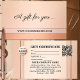 Cartão-presente do tamanho Elegante cartão de visita em cor de pêssego e rosa-pincelado com um revestimento de ouro rosa. Um modelo de logotipo e um modelo de código QR são adicionados para sua conveniência. Bonita para um salão de beleza, massagista ou um negócio de varejo para uma clientela feminina.