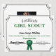 Enquadrado numa bela fronteira negra, este certificado é para completar "x" anos em escutas para raparigas e é um modelo personalizável. Você apenas preenche as áreas e fez. No verso, você tem a opção de carregar uma foto de recordação também!