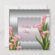 Convite de aniversário elegante com açucena rosa e prata. Belas açucenas rosa também estão no verso. Personalize com sua escolha de fonte, cor da fonte e posicionamento do texto.