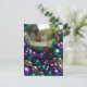 Foto de miçangas de Mardi Gras. Os arremessos apresentam as cores dourada, roxa e verde de Mardi Gras ou Carnaval. Personalize a parte de trás deste cartão postal com o seu próprio texto ou imagens. Faça convites ou convites personalizados para cartões postais de festas!