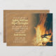 Convites de casamento Bonfire com design de fogo realista. Fotografia de areia é o fundo do texto que é em caracteres casuais, impressos em altura. Os nomes do casal e o nome do local estão em negrito e todo o texto é amarelo claro. Um grande sinal de "e" contém os nomes e atua como uma sombra por detrás do texto. A fogueira está à direita do texto. A amostra do texto começa com "junto com nossas famílias". A parte traseira da placa tem uma imagem de areia aloja. Escolha qualquer atualização de papel para aprimorar este design. Este convite para o casamento é perfeito para um evento noturno em um cenário casual onde os convidados podem se reunir ao redor do fogo.