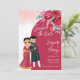 Casamento índio bonito Salve o modelo do convite de data. Viva cor magenta, casal de noiva indiana, rosas burgueses. Noiva sem ponto