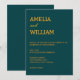 Este convite de casamento moderno e minimalista apresenta um fundo azul-esverdeado profundo com tipografia alaranjada-amarelada quente, criando um contraste ousado e elegante. O layout limpo e as escolhas de fontes refinadas tornam-no perfeito para casais que apreciam uma estética clássica e contemporânea. Personalize facilmente os nomes, data, local e detalhes da recepção para torná-lo exclusivamente seu. Ideal para temas de casamento elegantes, de tons quentes e formais.