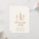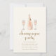 Este modelo de convite de festa com tema francês elegante apresenta um design sofisticado com uma garrafa de champanhe no centro, ladeada por duas taças de champanhe cintilantes de cada lado. A garrafa e as taças são sutilmente detalhadas, evocando uma sensação de sofisticação e celebração. Abaixo deste centro de mesa, os detalhes da festa são lindamente exibidos em uma fonte francesa lúdica e estilosa, adicionando um toque autêntico ao tema geral. O modelo captura a essência do charme parisiense, tornando-o perfeito para uma soirée repleta de elegância e joie de vivre.