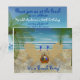 Desenho de uma cena de praia com duas cadeiras de praia viradas para o oceano sob as sombras das palmeiras. Nas cadeiras estão dois copos de vinho. Ao lado das cadeiras há uma cesta contendo um copo de vinho extra, uma garrafa de vinho e um livro. Tudo o que você precisa para um dia relaxante na praia. O convite tem dois lados personalizáveis. Adicione sua própria saudação e informações do evento, escolha o estilo, tamanho e cor da fonte.