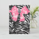 Laço rosa elegante com centro de diamante, modelo de convite de festa zebra rosa. Este chique convite de zebra rosa tamanho 5x7 funciona muito bem para convite de aniversário tema zebra rosa, save the date, convite de casamento tema zebra rosa, convite de chá de bebê tema zebra rosa, convite de Bat Mitzvah tema zebra rosa e qualquer outra ocasião especial. Adicione seus detalhes na frente e no verso simplesmente escolhendo o botão laranja "Personalize!" para começar a adicionar os detalhes do seu evento, estilo de fonte, tamanho e cor da fonte e texto. Por favor, note que todos os desenhos de convites que você encontrará no Zazzle são gráficos impressos em papel simples sem joias, laços, relevos, em alto-relevo ou peças ou partes adicionadas.