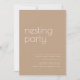 Se você ama um estilo simples de boho, este convite é certo para você. O convite apresenta um design elegante, com um fundo bege suave. No centro, os detalhes do partido são lindamente escritos em um texto branco exuberando um ar de sofisticação. Convide convidados para a sua festa de nidificação em estilo. A cor e o texto em segundo plano são editáveis.