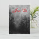 Um modelo de convite personalizado com letras nojentas em um céu nojento de Halloween com árvores negras ao longo de uma estrada sombria assombrada, corvos góticos e uma lua de cheio nublada em preto e branco. As letras no verso são uma mistura de guião granulado e letras pontiagudas num fundo de cinza arranhado. Clique em Personalizar para alterar fontes, dimensionar e muito mais, até salvar seu design para mais tarde.