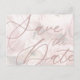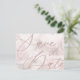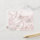 Este modelo de cartão postal de anúncio de Save the Date personalizável tem uma fotografia suave de peonias rosa como fundo, fonte superdimensionada, texto é editável e personalizável, basta clicar no botão Personalizar para torná-lo seu e congratulações, aproveite!