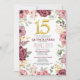 Celebre seu dia especial com nosso modelo de convite de Quinceañera lindamente projetado. Com um número "15" em dourado elegante e rodeado por arranjos florais requintados em tons de rosa e burgundy, este convite define o tom perfeito para uma celebração de Quinceañera memorável. O design de alta qualidade garante uma aparência sofisticada que impressionará seus convidados e tornará seu evento inesquecível