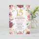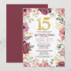 Celebre seu dia especial com nosso modelo de convite de Quinceañera lindamente projetado. Com um número "15" em dourado elegante e rodeado por arranjos florais requintados em tons de rosa e burgundy, este convite define o tom perfeito para uma celebração inesquecível de Quinceañera. O design de alta qualidade garante uma aparência sofisticada que impressionará seus convidados e tornará seu evento inesquecível