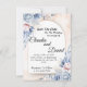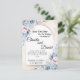 Este convite para o casamento apresenta um design floral suave e romântico com flores azuis pastel e cor-de-rosa pincelada. O texto aparece elegantemente num fundo semirarquizado, criando um olhar sofisticado e moderno. Os nomes são realçados em uma letra elegante, com detalhes adicionais sobre a cerimônia de casamento, incluindo data, hora e local. O convite também inclui um número de contato para convidados. Os delicados sotaques florais estilo aquarela adicionam um charme de eterno, fazer a escolha perfeita para um anúncio de casamento sonhador.