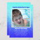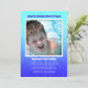 Rapaz mais velho, convite de festas de adoção com modelo fotográfico. Água brilhante e design de starburst azul púrpura com texto para personalizar em três lugares. Adicione uma foto grande a uma área de modelo enquadrado com informações de festa embaixo. Também pode ser usado como festa de aniversário de verão/convite de festas de piscina.