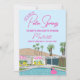 Torne a festa de despedida de solteira inesquecível com este convite elegante para a Festa de Despedida de Solteira em Palm Springs! Com uma casa de estilo moderno de meados do século desenhada à mão, este design vibrante captura a essência chique e descontraída de Palm Springs com uma cena à beira da piscina, palmeiras e um flamingo rosa inflável.