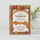Crie uma atmosfera quente e convidativa com este elegante modelo de Ação de Graças. Apresentando folhas de outono, abóboras, e um design rústico, é perfeito para hospedar uma memorável reunião de Ação de Graças. Personalize o texto para se adequar ao seu evento e partilhe o espírito de gratidão com a família e os amigos. Ideal para impressão a pedido, este design de convite combina encanto sazonal com estilo sofisticado.