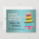Venha celebrar conosco... modelo de convite de cartão de aniversário azul, multicolorido.