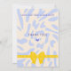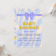 modelo e cartões de agradecimentos de convite para chá de fraldas. Placa de chá de fraldas de dois lados no estilo y2k, pacote de festas de feriado com frente e verso. Texto de fonte do balão de bolha amarela sobre fundo claro com manchas líquidas azuis