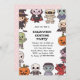 Modelo de cartas de convite para o Dia das Bruxas com personagens de desenho animados adoráveis ao redor da fronteira e espaço no vazio no meio para texto personalizado. Perfeito para festas infantis e designs impressão a pedido.