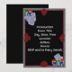 Cartões de pôquer vermelhos e pretos e fichas de pôquer modelo de convite para festa de pôquer. Personalize com as informações do seu evento de festa de pôquer - festa de aniversário, festa de despedida de solteiro, noite de cassino.