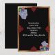Modelo de convite para festa de pôquer com fichas e cartas de pôquer pretas e douradas. Personalize com as informações da sua festa de aniversário, despedida de solteiro, noite de cassino ou festa de pôquer.