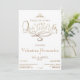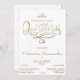 Modelo de convite da Quinceañera. Design clássico em ouro e branco com decoração caligráfica moderna. Adicione seu próprio texto com a ferramenta de edição Zazzle fácil de usar! NOTA: os detalhes dourados são imitação. Não é utilizada qualquer folha de alumínio.