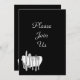 Um modelo de convite personalizado ou de anúncio com letras de script elegantes e um conjunto de pratos de prata em um bonito guardanapo de mesa em preto, cinza e branco.