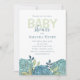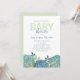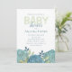 Um simples modelo de chá de fraldas minimalista. Este design apresenta um chá de fraldas azul verde moderno, hydrangea floral flor simples, fofa elegante, convite para folhas botânicas, verde-folha-verde-minimalista, uma festa de jardim de chá simples, com floral chico em folhagem floral, queda de primavera de verão, lindíssima escrita caligráfica mínima, convites de festas chás de fraldas, menina-chata ou neutra em relação ao gênero