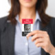 Modelo de Crachá de Identificação de Funcionário com Foto Personalizada Vermelho Preto. Adicione o nome da sua empresa, nome do funcionário e cargo do funcionário. Faça o upload da sua própria foto.