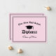 Modelo de certificado de diploma de graduação escolar formal com selo. Design de documento elegante com texto personalizado e nome do graduado. Fundo rosa ou cor personalizada. Dois lados com logotipo de borla e borda sofisticada. Diplomas de graduação oficiais e prêmios para estudantes e educadores.