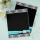Azul lacrimejante elegante e camada prateada com modelo de arco de trim de diamante azul-lacrimogêneo. Este belo folheto azul preto e branco pode ser facilmente personalizado para o seu evento simplesmente escolhendo o botão laranja "Personalizar!" para começar a adicionar os detalhes do evento, estilo de fonte, tamanho de fonte e cor e texto. Observe que todos os folhetos, adesivos, cartões e designs de convite que você encontrará no Zazzle são gráficos impressos sem joias reais, arcos, levantados, gravados em relevo ou peças ou peças adicionadas.