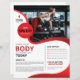 Modelo de folheto de malhação profissional concebido para promover ginásios, formação pessoal e programas de treino com um esquema moderno e energético. Perfeito para a saúde, o bem-estar e os serviços de malhações do marketing.