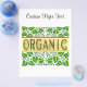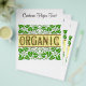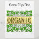 Este ditado verde diz Orgânico em letras verdes com arte safena de bolotas e folhas, sobre um fundo de folhas e vinhas verdes rolantes. Clique em Personalizar para alterar as fontes, as cores de fundo e até salvar o design para mais tarde.
