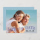 O texto simples azul e preto na frente deste cartão postal Salvar a Data Casamento é atraente, mas não desenhar a atenção da sua própria fotografia. A parte de trás do cartão tem muito espaço e vários campos de texto para você fazer com que ele diga o que quiser!