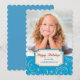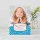 Uma borda de redemoinhos e estrelas brancas de Natal em um fundo azul fornece uma borda festiva para sua própria fotografia neste cartão de Natal. Sua fotografia cobre a parte superior, e um banner de borda azul, branco e dourado separa as duas porções. "Felizes Festas!" é a primeira linha no banner, com seu próprio texto em azul abaixo. O verso do cartão é azul sólido correspondente. Festivo e complementar à maioria das fotografias. Este design funciona bem com a maioria das formas de cartões oferecidas.