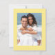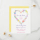 Este bonito modelo de foto, exceto o cartão de data, tem uma coroa multicolorida em forma de coração com uma variedade de diferentes flores e folhas em cores amarela, aqua, púrpura, vermelha, rosa e verde. A parte de trás amarela sólida tem um modelo de foto para você adicionar em uma foto, se quiser.