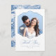 Este impressionante cartão de "Obrigado" tem uma elegância atemporal numa paleta clássica de azul e branco com um belo padrão de Chinoiserie e caligrafia elegante. A coleção apresenta padrões sofisticados e motivos delicados inspirados na porcelana tradicional chinesa, criando uma estética refinada e romântica. Desde convites lindamente desenhados até suprimentos e decoração de festa coordenados, cada detalhe é cuidadosamente elaborado para trazer um sentido de graça e charme ao seu dia especial. Personalize cada peça com seus detalhes para uma experiência de casamento verdadeiramente única. Procure ID1094 para ver todos os produtos coordenados desta coleção.