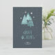 Este Cartões de foto de Natal branco apresenta um belo arranjo de árvores de Natal estilizadas e flocos de neve com um efeito texturizado em tons de azul de relógio sobre um fundo de terra profundo. O texto opcional "Feriados Felizes" na frente e um modelo foram fornecidos para adicionar sua foto e mensagem pessoal no verso. Procure ID861 a ID864 para ver opções de cores adicionais e outros produtos neste conjunto de design de Natal moderno.