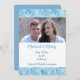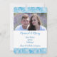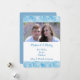 Este modelo de cartão de Natal simples com foto coloca suas fotografias no centro das atenções, com uma linda borda de padrão de flocos de neve em aquarela azul e branca na parte superior e inferior. Seu texto personalizado está em azul correspondente no centro, sobre um fundo branco. Mostramos um tema "Casados e Felizes", mas todo o texto é facilmente personalizado, então este design pode ser adaptado a qualquer situação, incluindo uma fotografia de família. A parte traseira do cartão é azul sólida correspondente. *Crédito do padrão de floco de neve para ATArtDigital*
