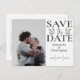 Anúncio de 'salve a data' elegante é perfeito para dar andamento aos seus planos de casamento. Possui um modelo de foto e tipografia grande de 'salve a data' com elementos botânicos, tudo sobre um fundo branco. Customize com seus próprios detalhes.