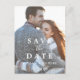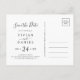 Este modelo de foto minimalista para salvar o cartão postal é perfeito para um casamento simples. A design romântica moderna apresenta a tipografia clássica, em preto e branco, emparelhada com uma caligrafia rústica, mas elegante, com estilo voltado para a mão. Personalizável em qualquer cor. Mantenha o design simples e elegante, como está, ou personalize-o adicionando seus próprios gráficos e trabalhos de arte.