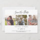 Este modelo de foto minimalista 3 para salvar o cartão de data é perfeito para um casamento simples. A design romântica moderna apresenta a tipografia clássica, em preto e branco, emparelhada com uma caligrafia rústica, mas elegante, com estilo voltado para a mão. Personalizável em qualquer cor. Mantenha o design simples e elegante, como está, ou personalize-o adicionando seus próprios gráficos e trabalhos de arte.