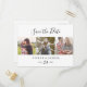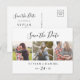 Este modelo de foto minimalista 3 para salvar o cartão postal é perfeito para um casamento simples. A design romântica moderna apresenta a tipografia clássica, em preto e branco, emparelhada com uma caligrafia rústica, mas elegante, com estilo voltado para a mão. Personalizável em qualquer cor. Mantenha o design simples e elegante, como está, ou personalize-o adicionando seus próprios gráficos e trabalhos de arte.