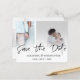 Esta elegante salvação da data do casamento é o modelo de foto perfeito para fazer seus planos de casamento em movimento. Ele apresenta 2 modelos de fotos na frente e no verso e um script de estilo escrito à mão sobre tendência, tudo em um fundo branco. Muito fácil de editar com suas próprias informações e fotografia.