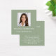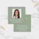 Personalize este modelo de cartão de perfil minimalista verde sage. Customize a escrita branca moderna com seu nome e informações de contato profissionais. Adicione sua fotografia ao modelo de foto deste cartão de visita quadrado. Adicione o endereço da sua empresa ou corporativo para um cartão de visita profissional elegante. O verde sage suave ou verde eucalipto é tendência. A escrita minimalista pode ser editada com seu texto personalizado.